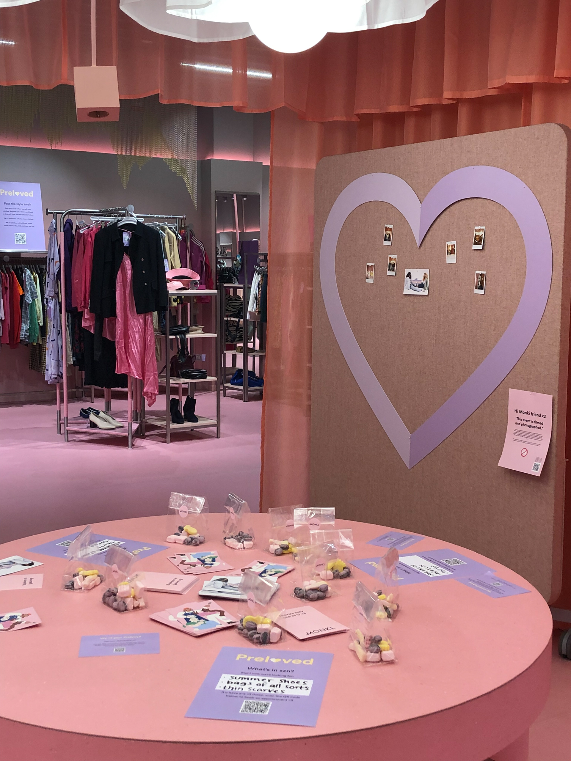 Long life materials for PreLoved + for the PreLoved event that was held at the Monki store community area in Stockholm, 2023.